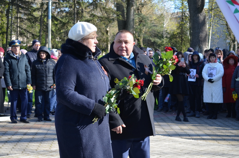 Участники митинга почтили память воинов, возложили цветы к каменным плитам мемориала и к памятнику героям-освободителям.