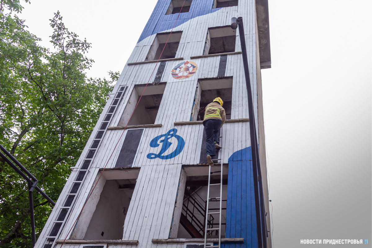В завершение экскурсии детям показали тренировочные занятия. На специальном тренажёре спасатели продемонстрировали технику лаза по штурмовой лестнице.