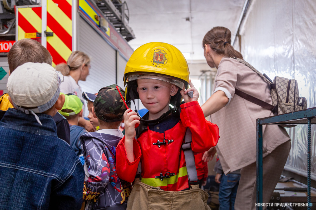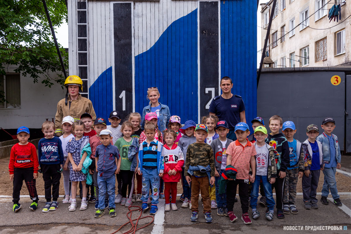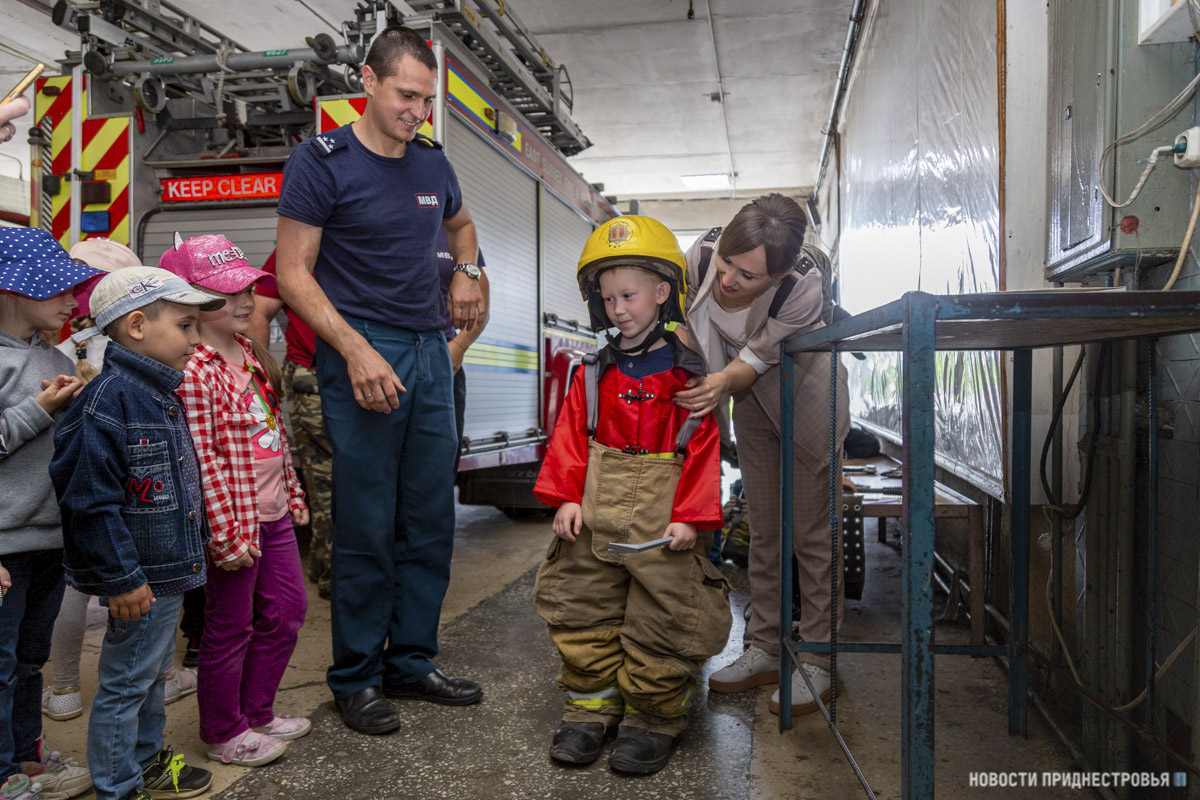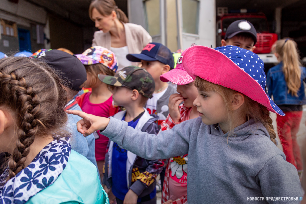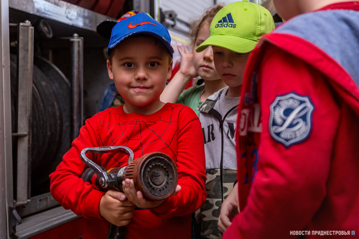 Тирасполь, 15 июня. /Новости Приднестровья/. Сегодня в пожарной части Тирасполя было по-особенному шумно и суетливо. Не подумайте, что в столице или близлежащих сёлах произошли возгорания. Всего-навсего в СВПЧ-1 на экскурсию пришли 24 воспитанника детского сада № 17. Посещение части стало возможным благодаря смягчению карантинных ограничений, действующих из-за пандемии коронавируса.