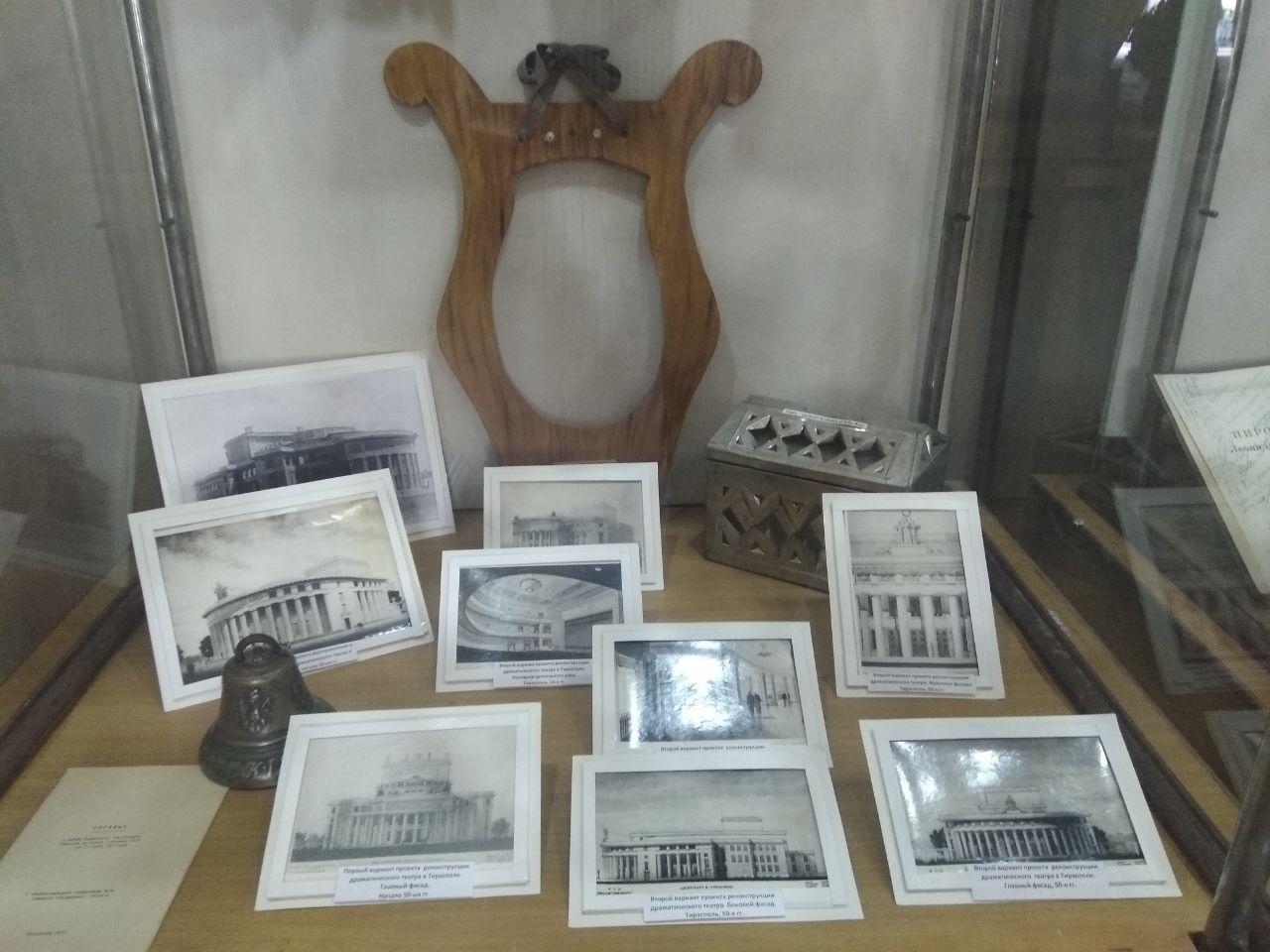 В экспозиции представлены уникальные фото, афиши к спектаклям и бутафорские предметы