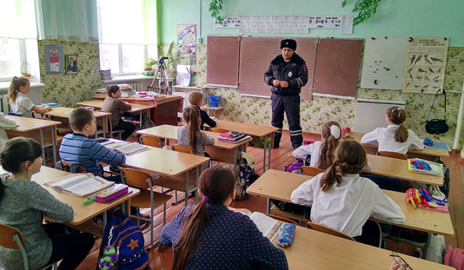 В преддверии весенних каникул сотрудники ГАИ проводят лекции для школьников