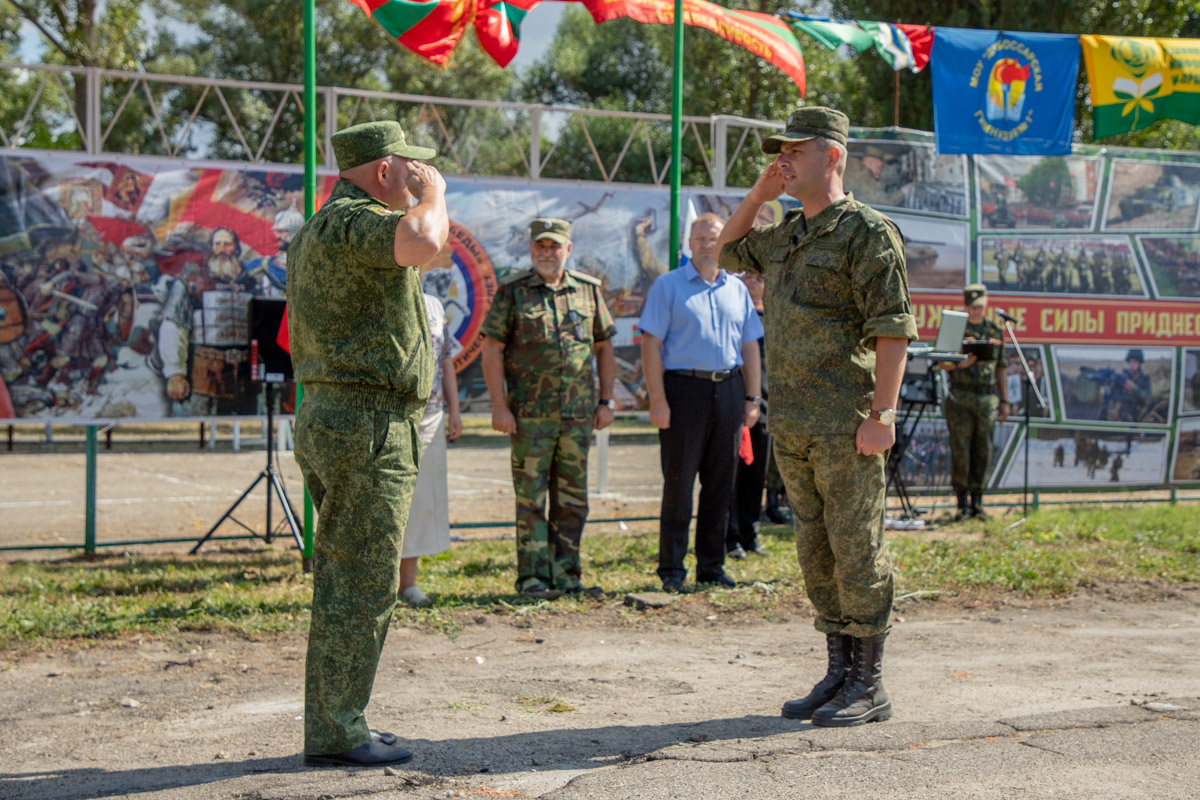 Торжественная церемония открытия началась с приветственного слова министра обороны ПМР Олега Обручкова и поднятия государственных флагов Приднестровской Молдавской Республики и Российской Федерации.