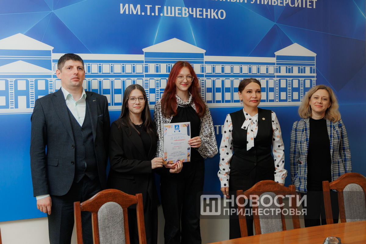 Победителям сегодня вручили грамоты и дипломы, которые в дальнейшем могут быть использованы в их портфолио. С поздравительным словом выступила исполняющая обязанности ректора Приднестровского госуниверситета Лариса Скитская.