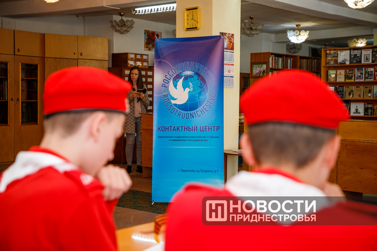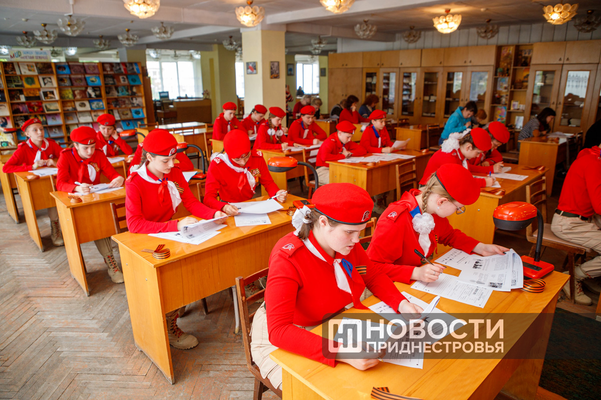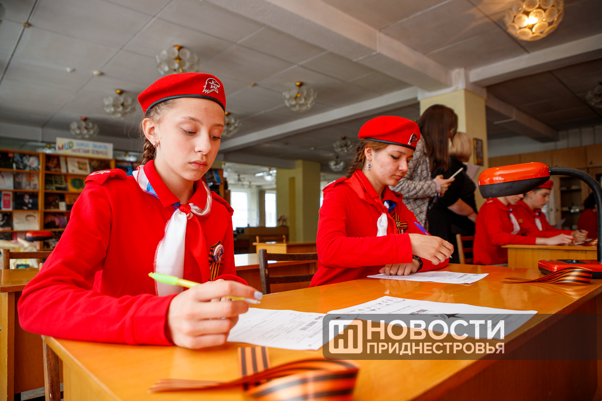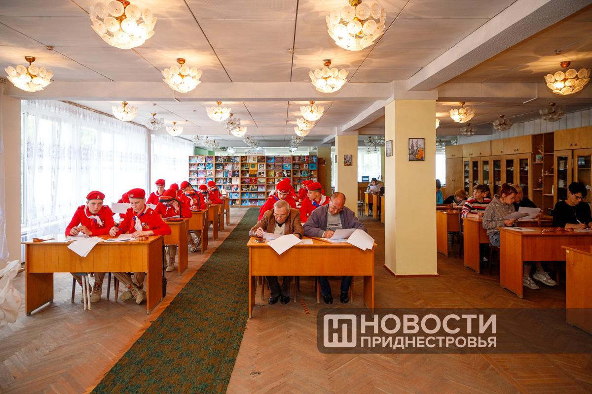 В столице на площадке Тираспольской городской библиотеки им. А. С. Пушкина Диктант Победы писали юнармейцы, работники и читатели библиотеки.