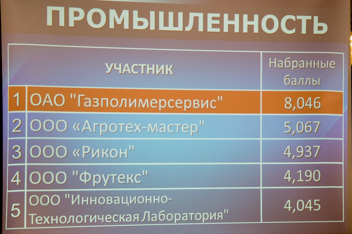 В номинации «Промышленность» им стало ОАО «Газполимерсервис» из Тирасполя, в «Пищевой промышленности» — Бендерская фирма «Рилла», в «Сельском хозяйстве» — Дубоссарская птицефабрика ООО «Пиазис».