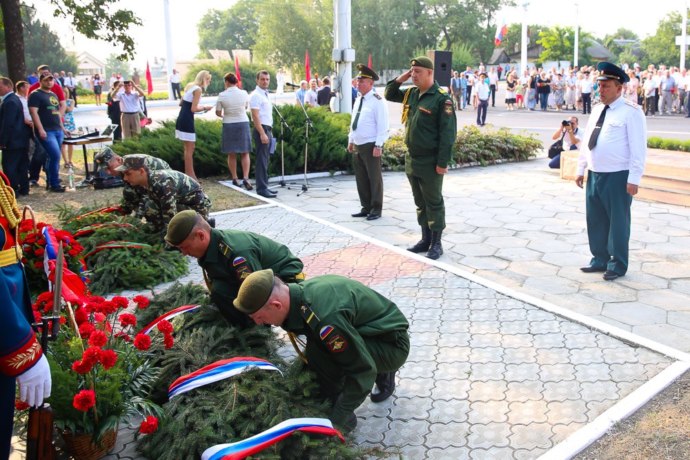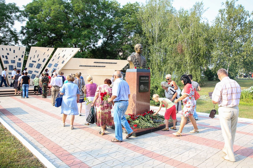 После митинга руководство республики и города, представители ОГРВ и ОКК, члены общественных организаций и жители города возложили цветы к памятному знаку «Блаженны миротворцы», памятнику генералу Лебедю и Мемориалу Памяти и Скорби.