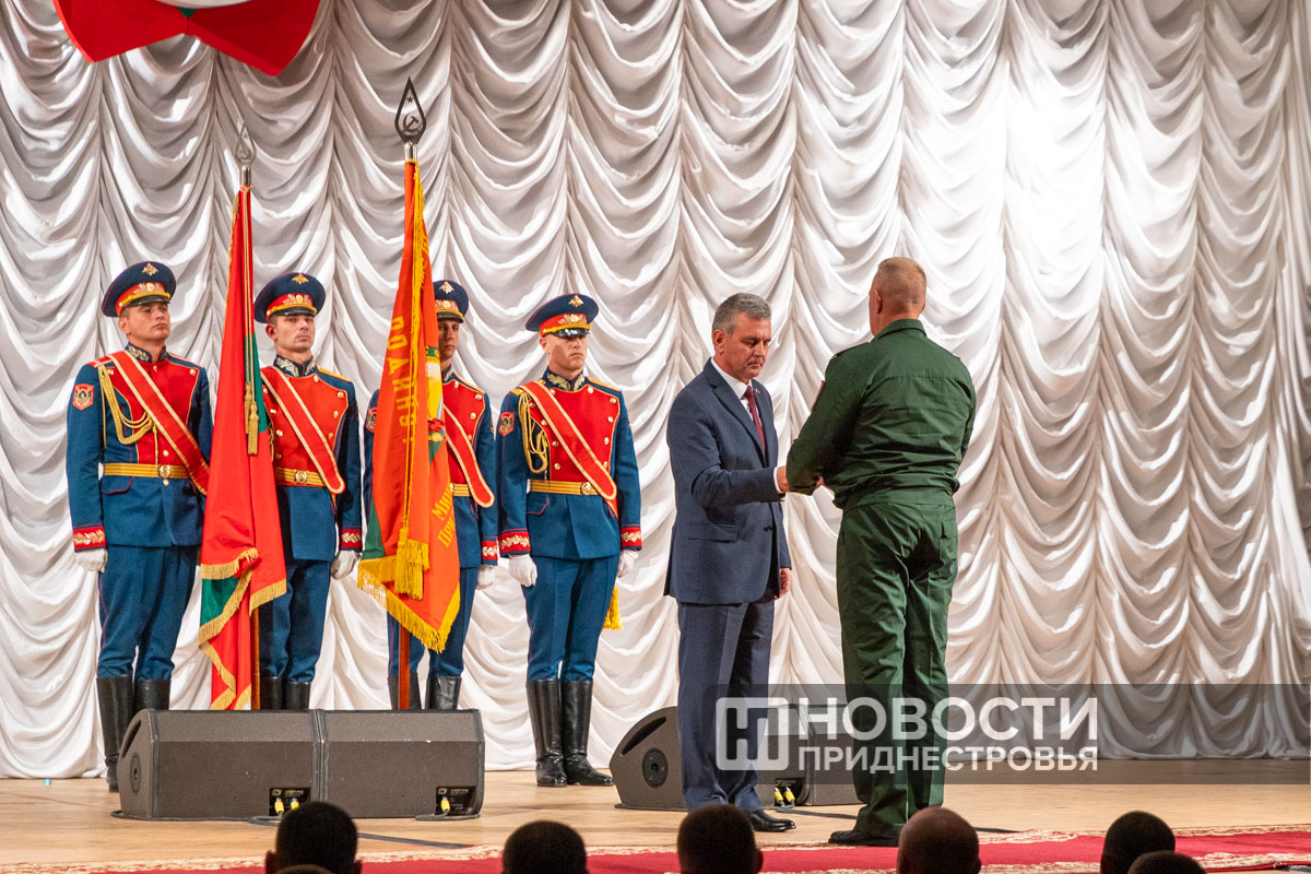 Участие в праздничном мероприятии принял Президент ПМР Вадим Красносельский. Глава государства акцентировал внимание на единстве армии и народа. Говорил об инфраструктурном и техническом развитии Вооруженных сил. Особо остановился на значимости образования военнослужащих, напомнив, что в республике действует полный цикл образования в оборонной сфере. Президент заверил, что в ближайшее время будет сдан новый учебный городок военного института Минобороны ПМР.