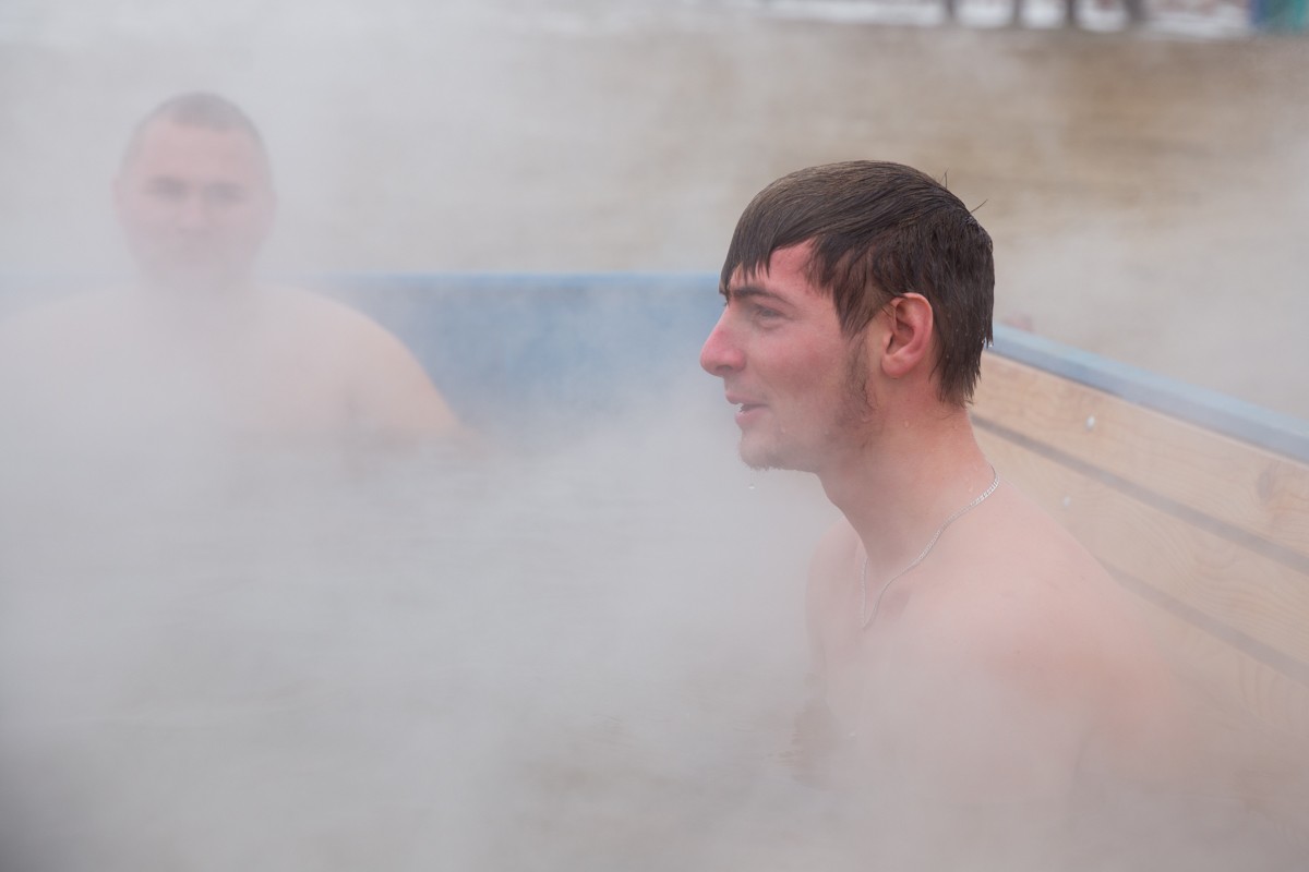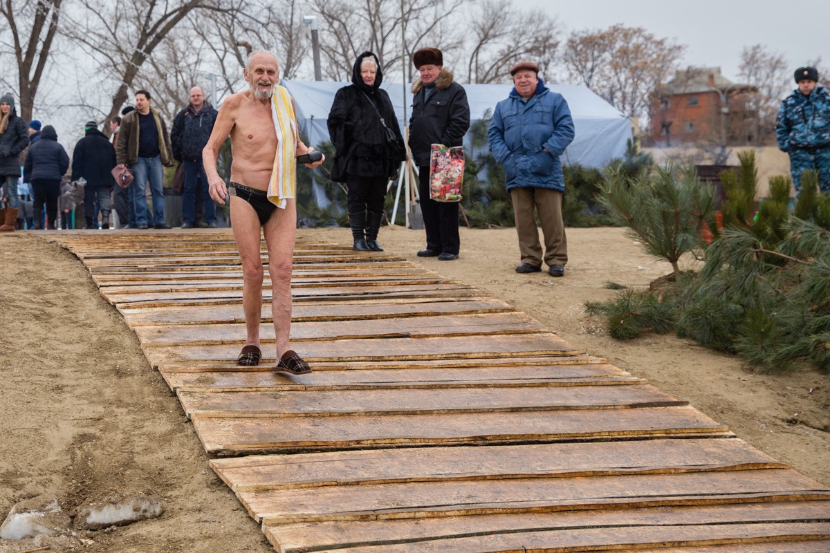 Все условия для этого были созданы ещё накануне: на пляже установлены 4 палатки, где можно переодеться, обогреться и выпить горячий чай. Также здесь со вчерашнего вечера дежурят бригады врачей, спасателей и милиционеров.
