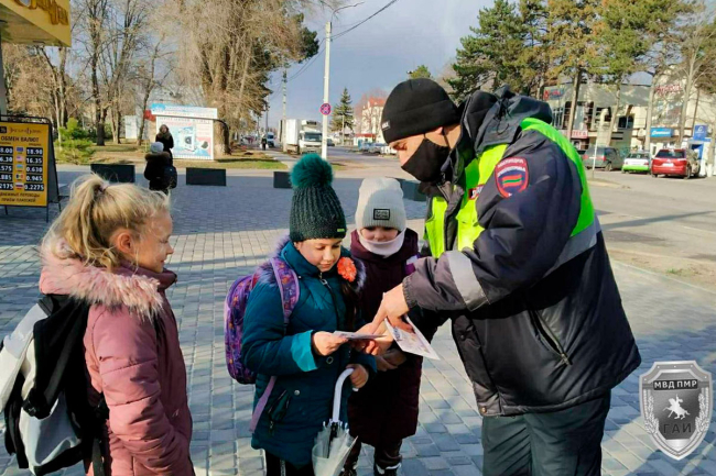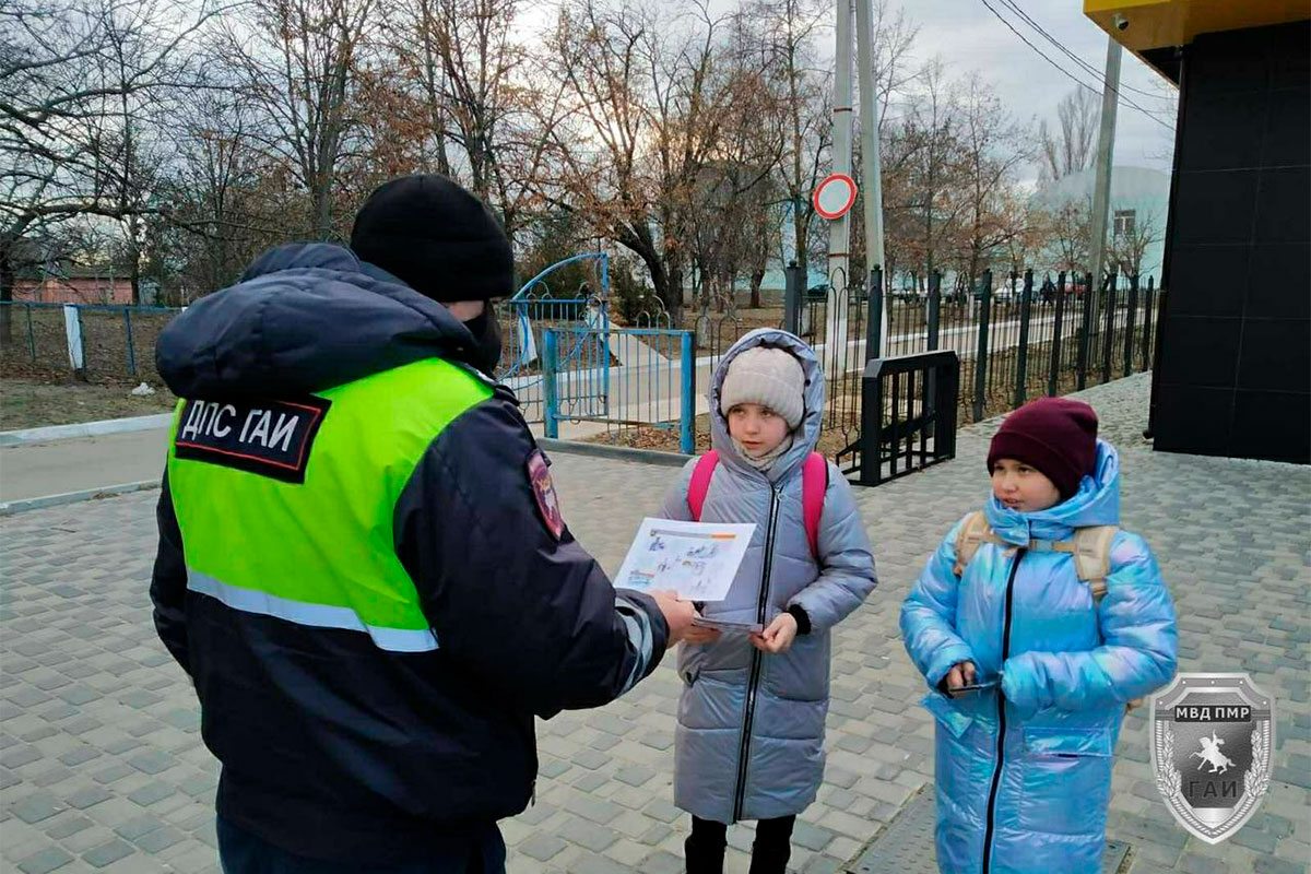 Чтобы уменьшить риск опасных ситуаций, вблизи школьных и дошкольных образовательных учреждений, досуговых центров несут службу сотрудники ГАИ. Они напоминают юным приднестровцам о поведении на дорогах зимой, раздают им тематические памятки.