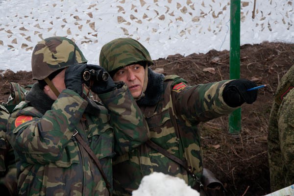 Под общим руководством начальника Главного штаба Вооруженных сил полковника Сергея Герасютенко в ходе группового упражнения по тактической подготовке на местности офицеры принимали решение на прикрытие государственной границы с последующим переходом к обороне на два фронта.