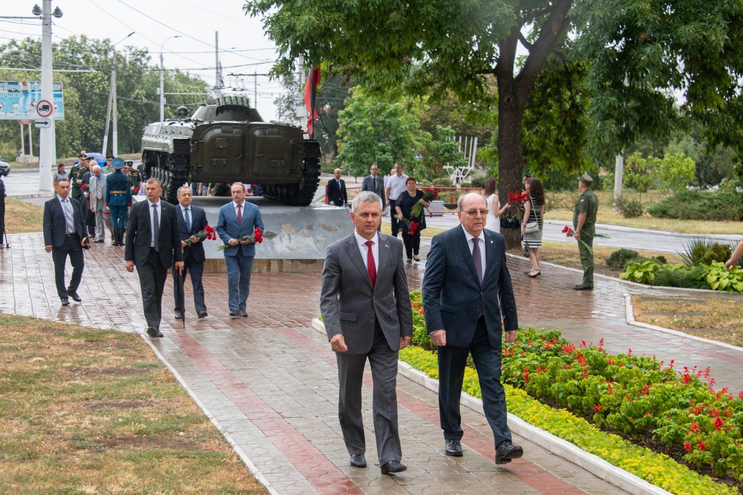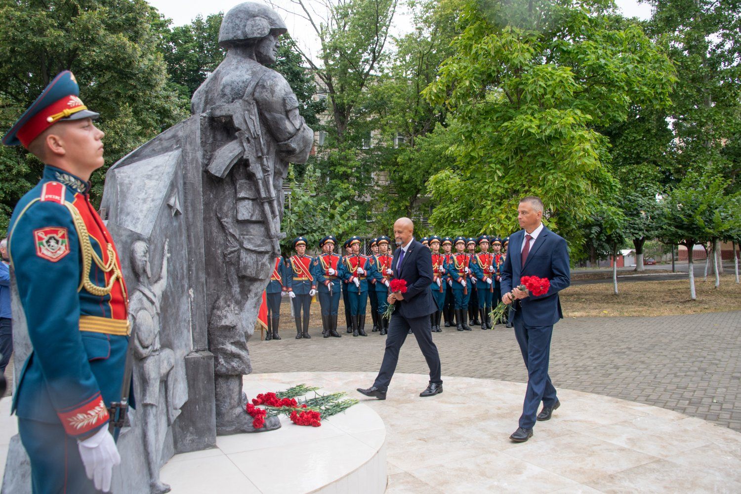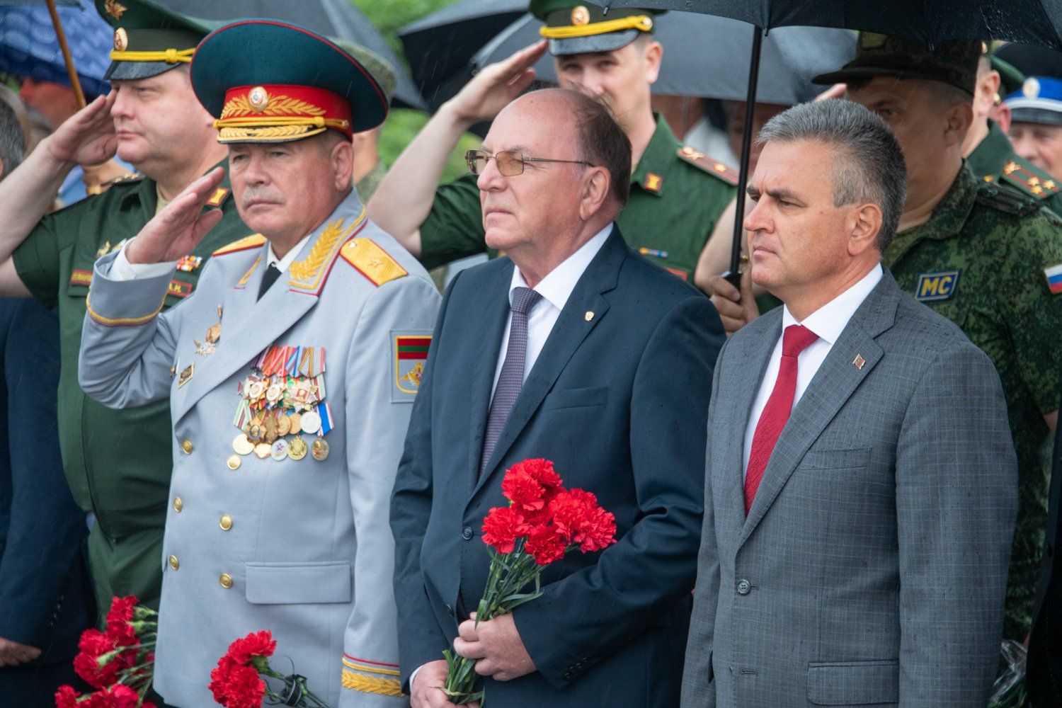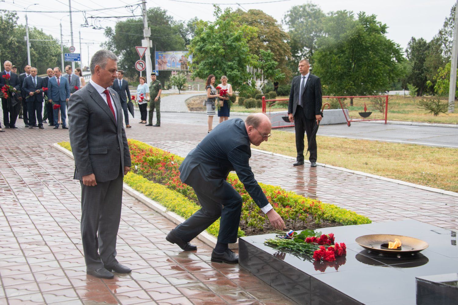 Участники посвященного 30-летию ввода миротворцев в Приднестровье торжественного мероприятия посетили и бендерский Мемориал Памяти и Скорби. Вместе с главой государства цветы к основным объектам мемориального комплекса возложили сегодня Первый Президент ПМР Игорь Смирнов, Чрезвычайный и полномочный посол Российской Федерации в Молдове Олег Васнецов, сопредседатели Объединенной контрольной комиссии Олег Беляков (ПМР) и Александр Андреев (РФ).