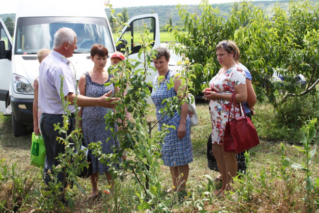 В рамках проекта для женщин-сельхозпроизводителей Рыбницкого и Каменского районов проведён обучающий семинар по выращиванию косточковых (слива, абрикос, персик, черешня). В ходе его теоретической части собравшиеся говорили о закладке косточкового сада, сортах косточковых, уходе и обрезке деревьев, борьбе с вредителями и болезнями, уборке и хранении урожая.