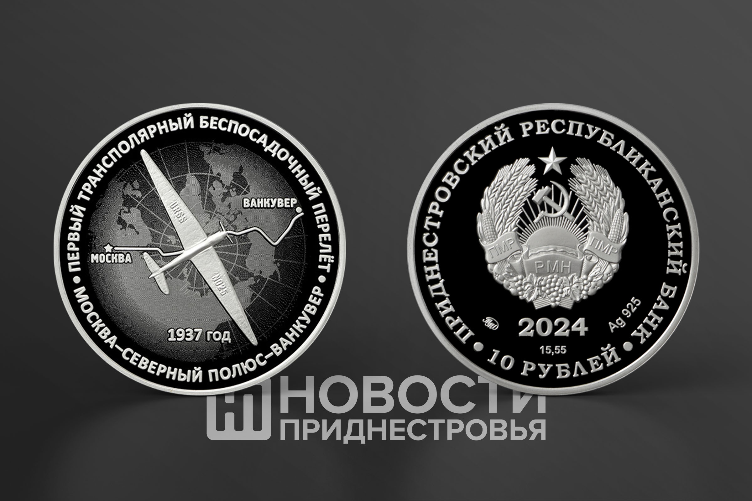 Тирасполь, 18 октября. /Новости Приднестровья/. С 18 октября в Приднестровье вводятся в обращение новые памятные монеты из серии «Исторические достижения, события и личности». Они посвящены первому в СССР трансполярному перелету, совершенному советскими летчиками Валерием Чкаловым, Георгием Байдуковым и Анатолием Беляковым в 1937 году.