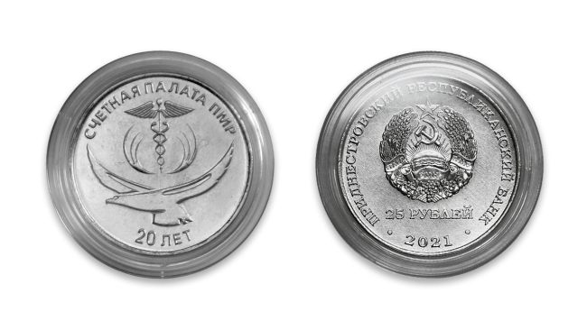 Тирасполь, 6 сентября. /Новости Приднестровья/. Приднестровский республиканский банк ввел в обращение памятные монеты из недрагоценных металлов достоинством 25 рублей «20 лет Счётной палате ПМР» серии «Государственность Приднестровья». Их тираж – 2,5 тысячи штук.