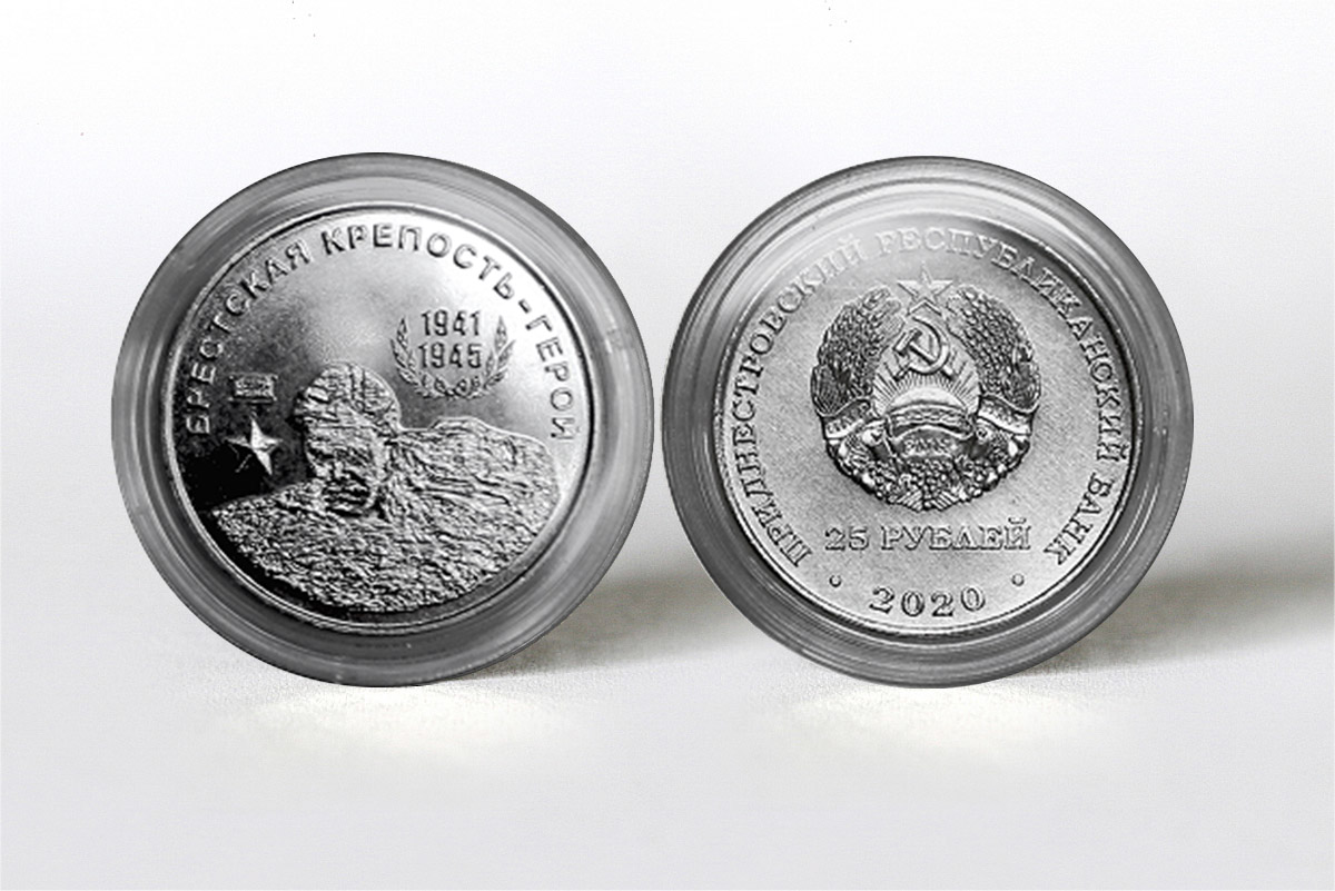 Тирасполь, 23 октября. /Новости Приднестровья/. С сегодняшнего дня в Приднестровье ввели в обращение памятные монеты из недрагоценных металлов достоинством 25 рублей «Брестская крепость-герой». Они пополнят серию «Города-герои в годы Великой Отечественной войны 1941-1945 годов».