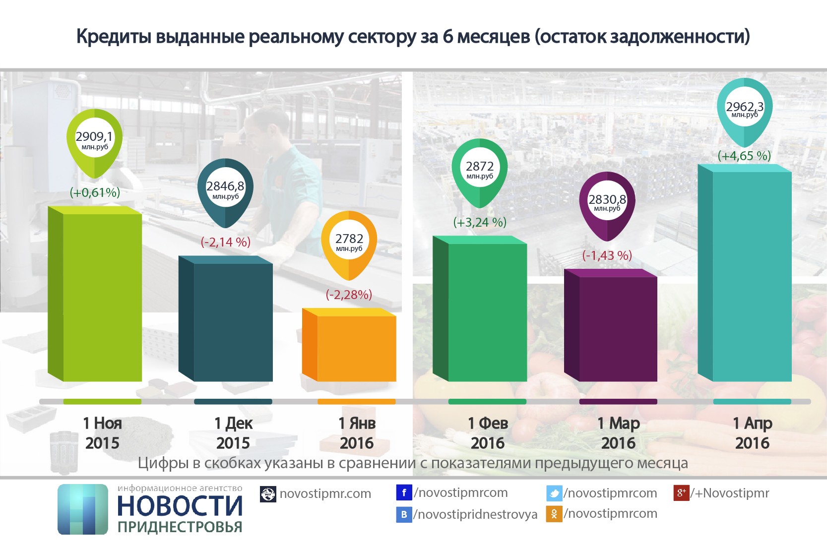Тирасполь, 18 апреля. /ИА «Новости Приднестровья"/. В первые два месяца 2016 года по сравнению с таким же периодом прошлого года ставки по краткосрочным рублевым кредитам для предприятий реального сектора снизились на 2% - до 12,7%. В то же время по долгосрочным кредитам в рублях ставки здесь выросли с 9% до 12,4%.
