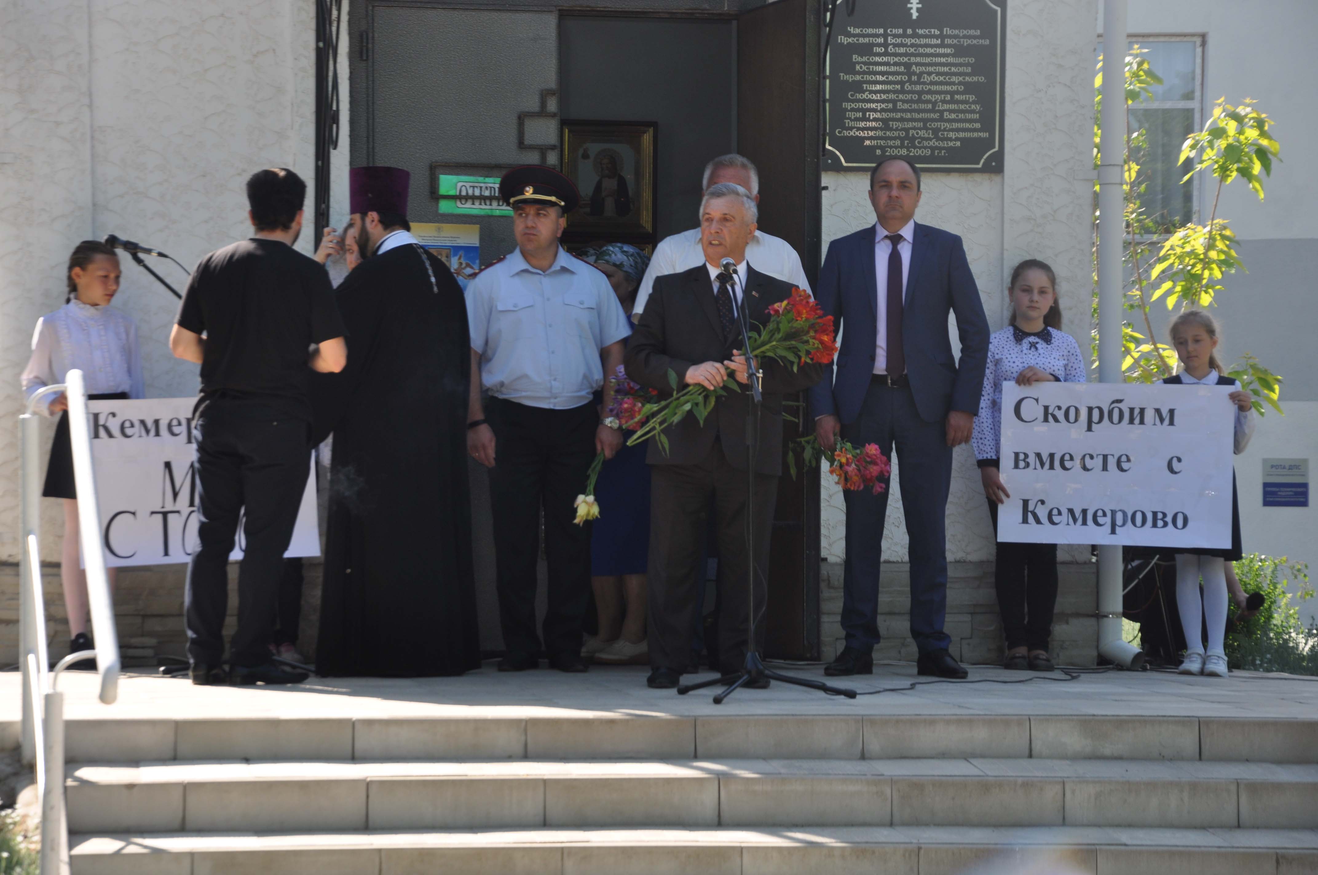 Скорбная панихида уже состоялась в часовне у здания Слободзейского РОВД. На мероприятии присутствовали руководство и коллектив госадминистрации, сотрудники организаций и предприятий, учащиеся местных школ, сообщается на официальном сайте города и района.