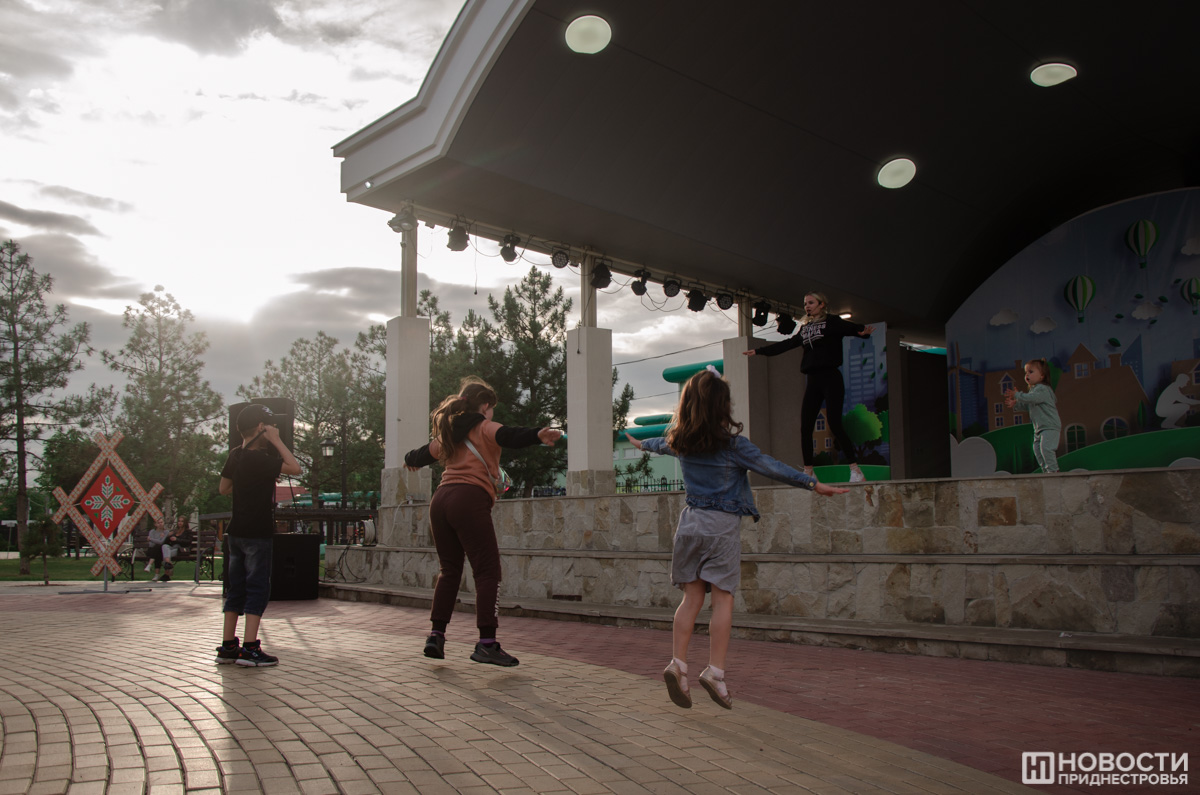 Вечером в Екатерининском парке прошел большой спортивный праздник. Славная советская традиция заниматься коллективно, на свежем воздухе и под музыку уже несколько лет воплощается командой тренеров «Фитнес-Мафия». В современном варианте это выглядит так: сначала разминка, потом хип-хоп танцы, комплекс для всего тела и растяжка. На тренировке присутствовало много людей. Бодрые голоса ведущих, их энергия и позитив вдохновляли тираспольчан. Среди них были и дети, которые с удовольствием повторяли все движения за тренером. Организаторы планируют радовать жителей и гостей города и летом.