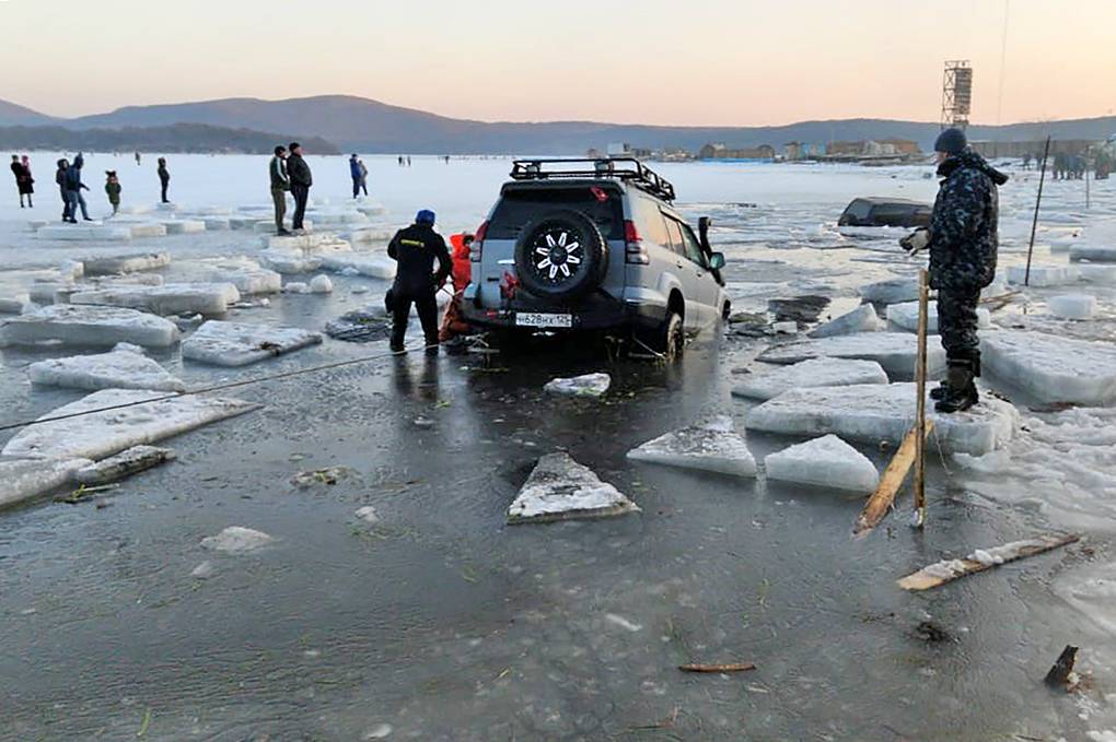 В Приморском крае России около 30 машин рыбаков провалились под лёд