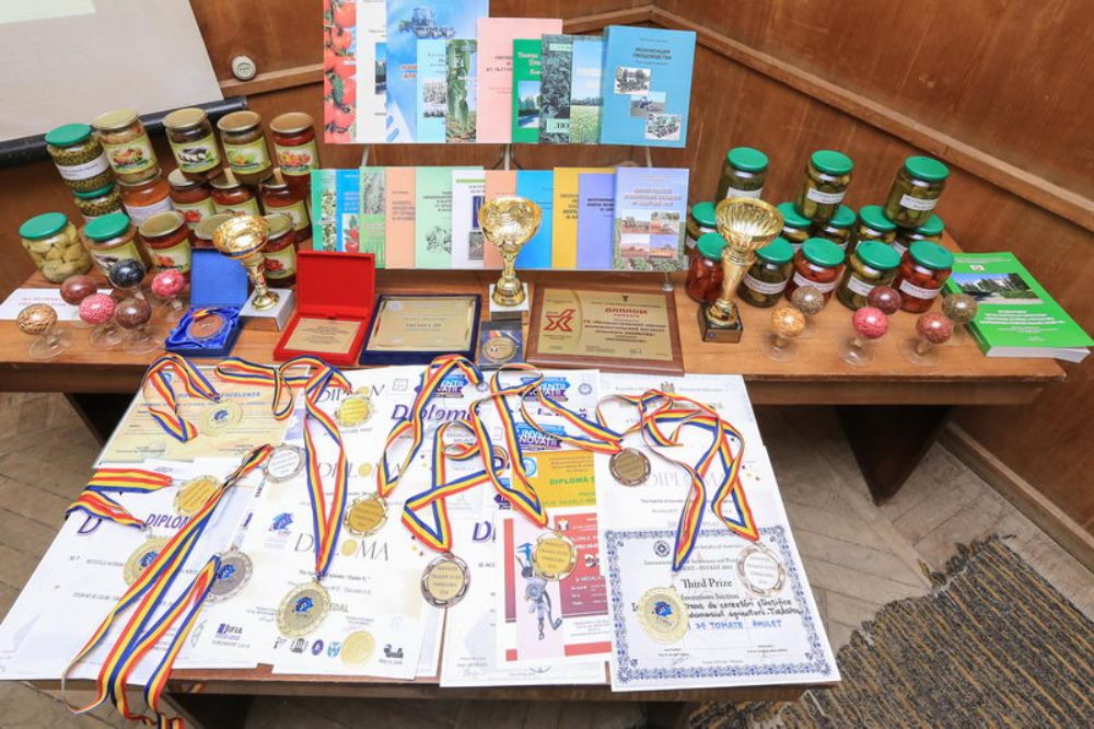 «Золотые медали получили гибриды томатов «Маргаритка”, «Малиновая жемчужинка”, «Мариэль”, «Задор”, «Золотая жемчужинка”, «Сокол”, гибриды капусты белокочанной «Шедевр” и «Батал”, овощные консервы. Серебряные — гибриды томата «Золотая жемчужинка”, «Малиновая жемчужинка”,