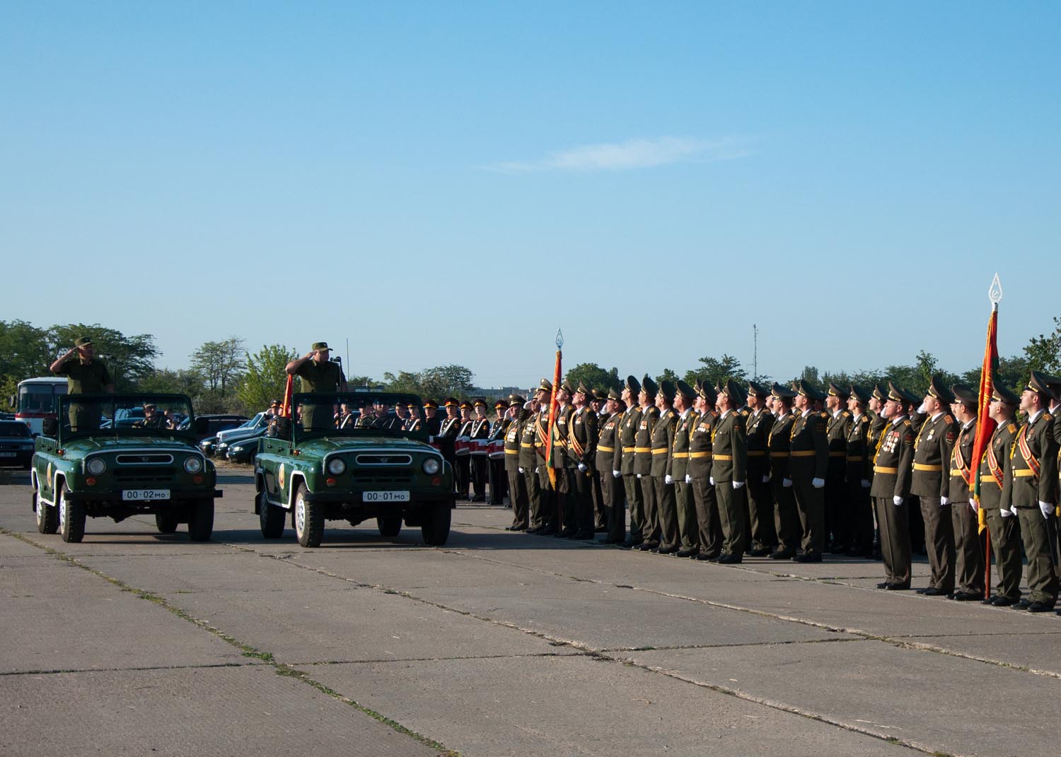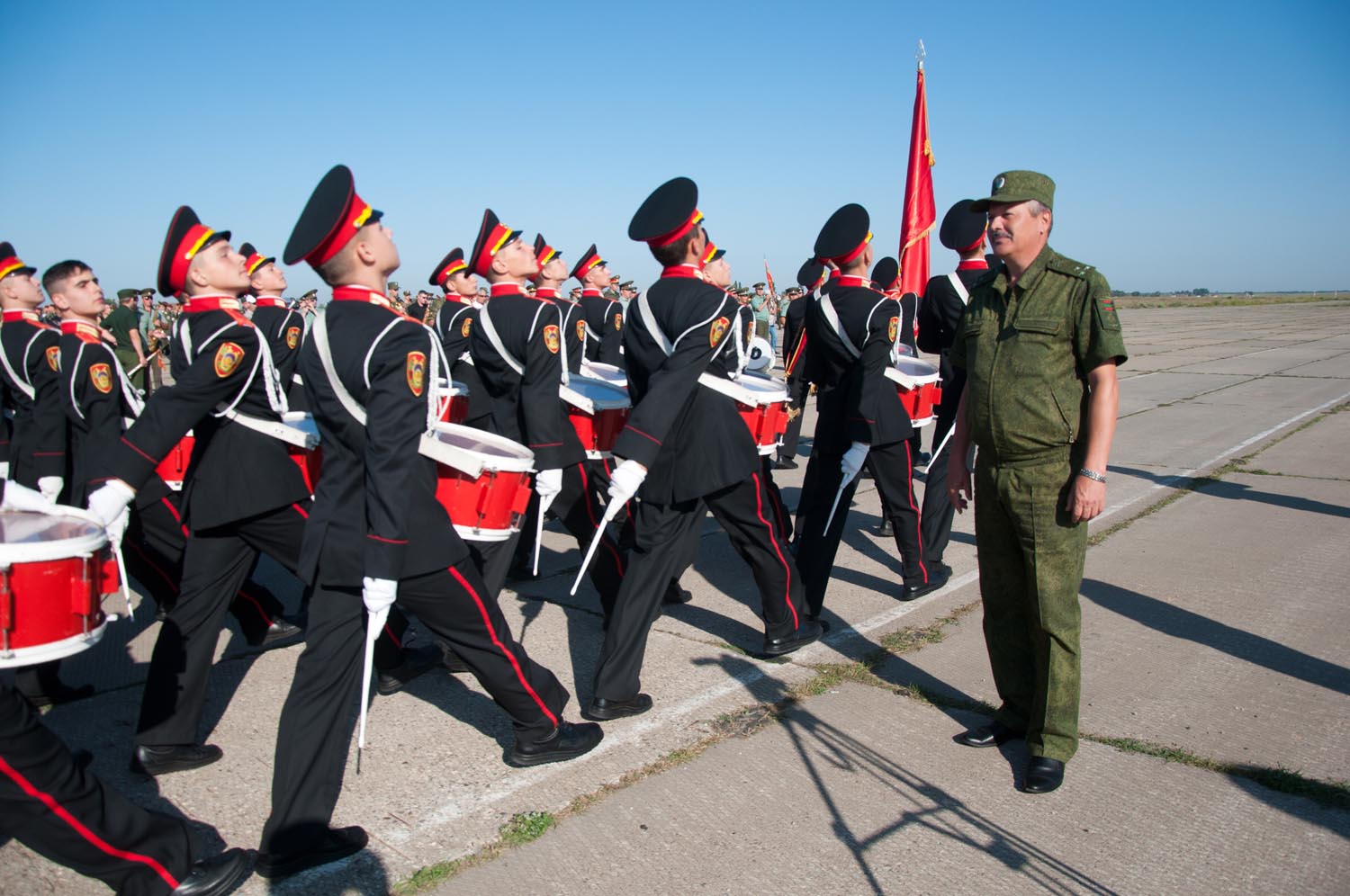 «Примерно полтора месяца назад началась подготовка к параду. Большая часть парадных расчетов состоит из молодых солдат, которых нужно было научить строевому шагу и другим элементам, — пояснил заместитель министра обороны - начальник управления воспитательной работы подполковник Александр Доников. — Сейчас можно с уверенностью сказать, что слаженность парадных расчетов достигнута».