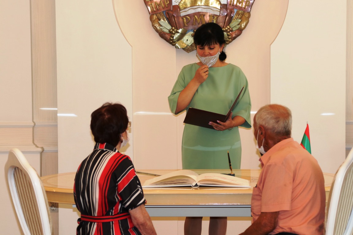 В Бендерах сегодня поздравляли пары-юбиляры, прожившие вместе 65 лет, и молодоженов.