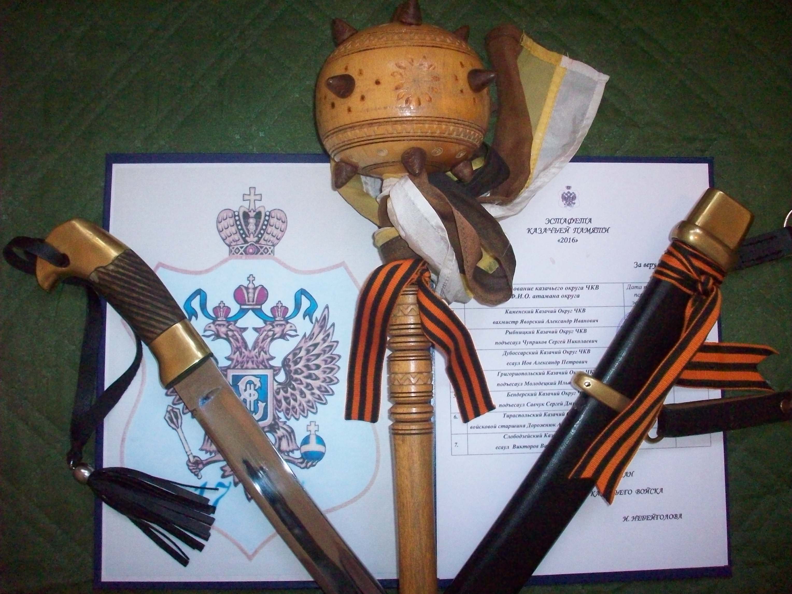 Накануне эстафету памяти принимало дубоссарское казачество. На мемориале Воинской Славы в центре Дубоссар рыбницкие казаки торжественно передали дубоссарцам символ казачьей власти – атаманскую булаву, перевязанную миниатюрными флагами Черноморского казачьего войска, Союза казаков России и георгиевской ленточкой.
