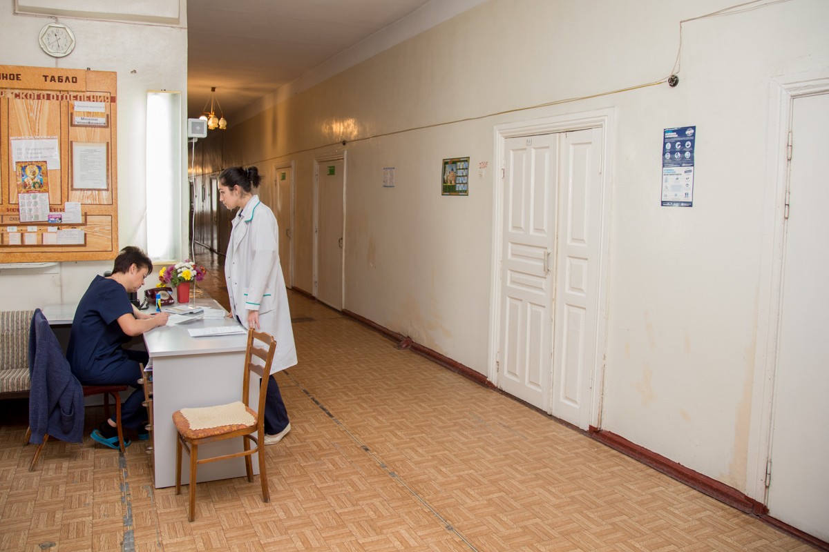 Отделение рассчитано на 45 коек, но так как изначально корпус строился под терапевтические цели, то он не предусматривал пребывания пациентов в стационаре. Соответственно, в палатах отсутствуют минимальные гигиенические условия: нет раковин, душевых и туалетных комнат.