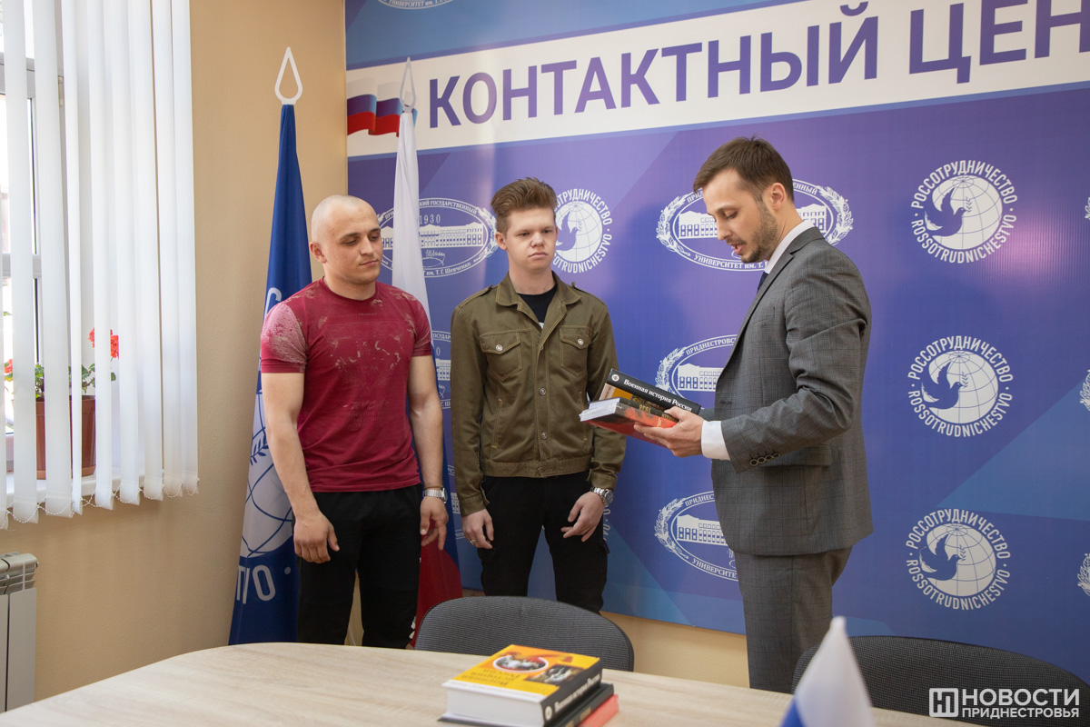 Приднестровские студенты Александр Ганзий и Ян Рылов получили комплекты книг по истории России