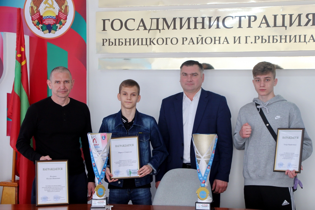 Глава Рыбницы отметил, что город гордится такими талантливыми спортсменами. Пожелал ребятам новых высот, вручил грамоты и подарочные сертификаты в магазин электроники и бытовой техники.