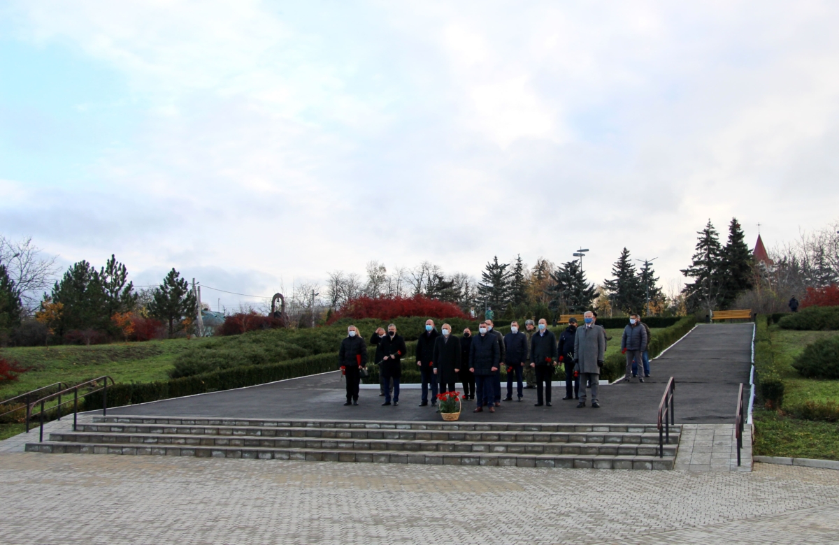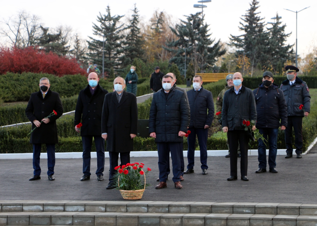 С утра руководство города и района и депутаты Верховного Совета возложили цветы на мемориальном комплексе, а также к памятному знаку генерал-майору К. Н. Цветкову.