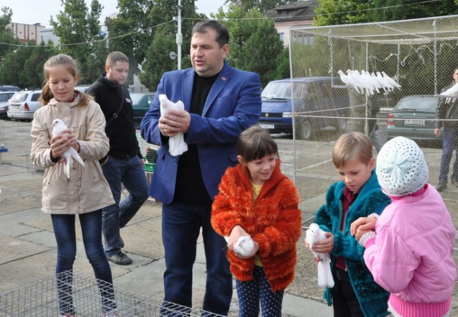 Голубевод из Тирасполя Анатолий Гнидунец участвует в выставке в третий раз. Сегодня привез в Рыбницу самых разнообразных голубей: драконов, кингов, одесситов, павлинов, почтовых, летных бабочек. По его словам, голубями он начал заниматься в 5 лет с одной породы. Сейчас уже разводит многие породы и приучает к голубеводству своих детей.