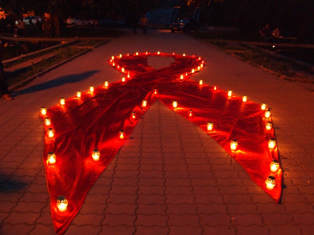Вечером из десятков лампад в память о людях, умерших от СПИДа, была выложена красная лента скорби и памяти.