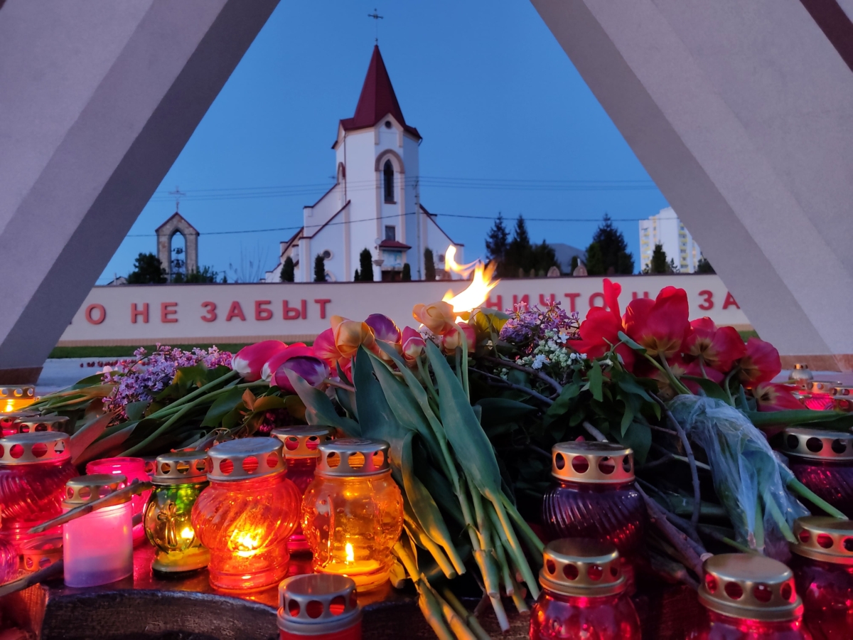 Горожане возложили цветы и горящие свечи к Вечному огню