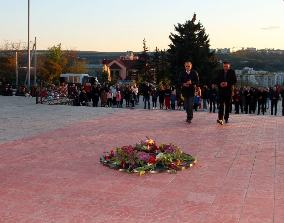 Рыбница, 9 мая. /Новости Приднестровья/. На Мемориале Воинской Славы в Рыбнице прошла традиционная патриотическая акция «Свеча памяти». Жители города собрались, чтобы отдать дань памяти и уважения героям Великой Отечественной войны, погибшим защищая Родину.