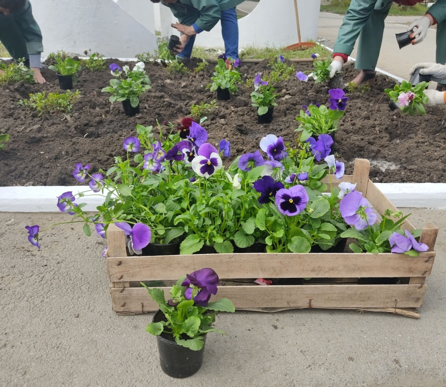 Новые растения уже появились на клумбах и в цветниках в центральной части Рыбницы. Сегодня ведутся работы по облагораживанию вертикальных клумб на центральной площади.