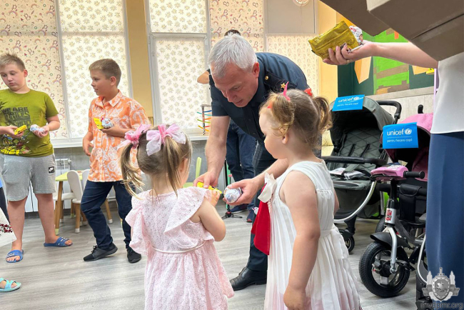 Поздравить детвору с праздником и началом лета прибыл лично министр внутренних дел Виталий Нягу. Под аплодисменты глава ведомства вместе с одним из маленьких постояльцев «Солнечного» разрезал красную ленточку. Мальчишки и девчонки, широко улыбаясь, побежали тестировать мини-игролэнд.