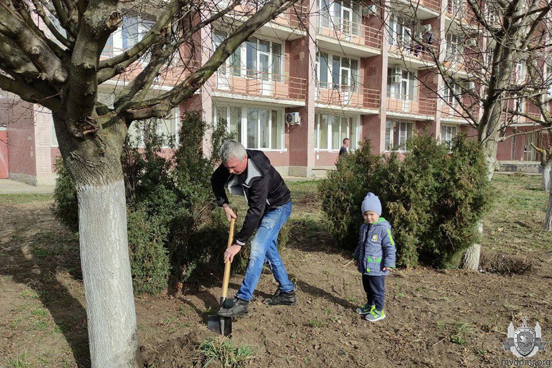 Взрослые убрали сухую листву и ветки, побелили деревья и бордюры, сообщает пресс-служба МВД. Пока родители работали, их дети участвовали в эстафетах.