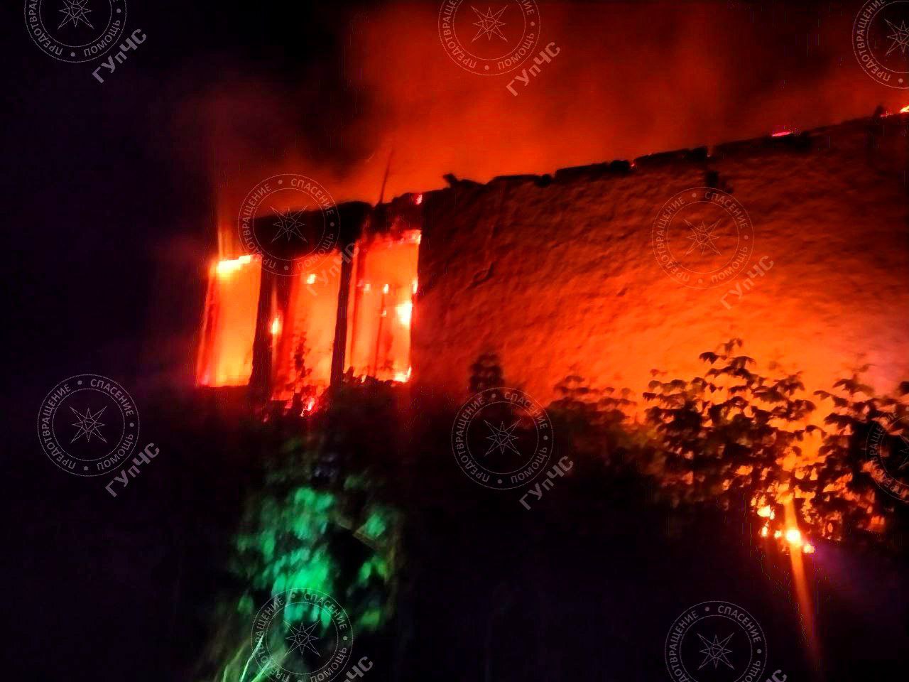 Вызов на пульт пожарной охраны поступил сегодня около часа ночи. На вызов прибыл один расчёт. Школу потушили, но кровля и потолочные балки были полностью уничтожены огнём.