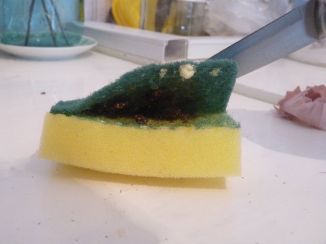 Массу темно-коричневого цвета с запахом уксуса и ацетона обнаружили в губках для посуды