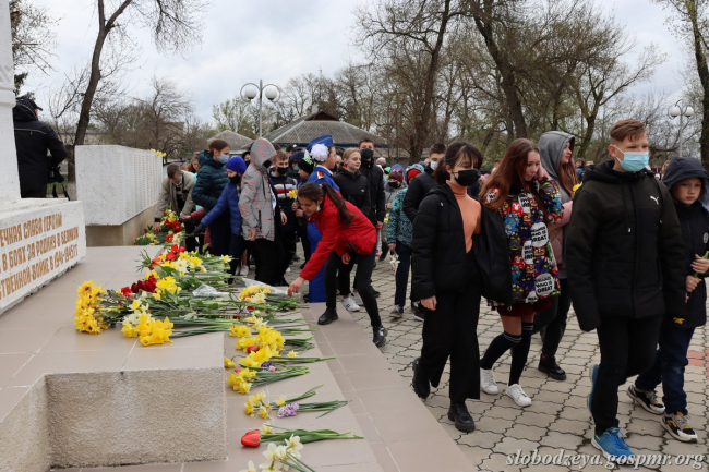 Почтить память тех, кто ценой своей жизни отстоял свободу и честь своей Отчизны, кто поборол фашизм в годы Великой Отечественной войны, к Мемориалу Славы пришли руководители слободзейской госадминистрации и Совета народных депутатов, учреждений и организаций, общественники, жители города, учащиеся общеобразовательных школ № 2 и № 4 и центра развития ребёнка «Лучик».