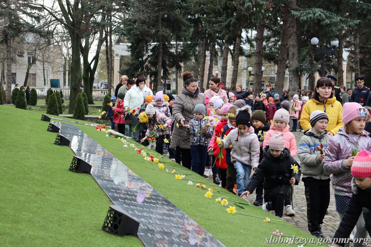 Как сообщается на сайте местной госадминистрации, у колоннады, предваряющей мемориальный комплекс, собрались несколько сотен человек. Среди них: руководство госадминистрации, депутаты райгорсовета, представители организаций и учреждений, общественники, студенты и преподаватели Слободзейского политехнического техникума, учащиеся местных школ и воспитанники детских садов.