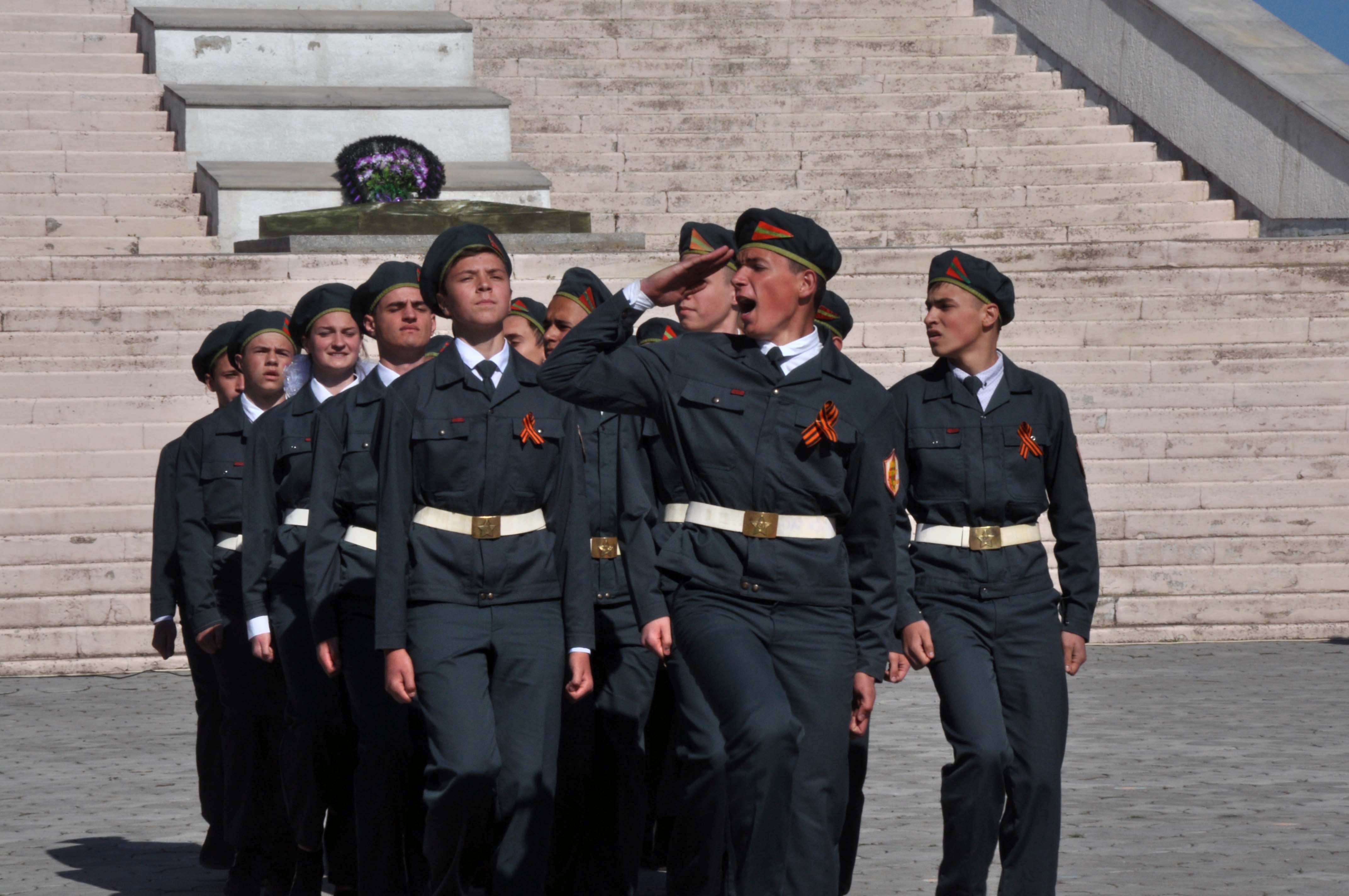 По традиции торжественное построение юнармейцев проходило на Кицканском плацдарме