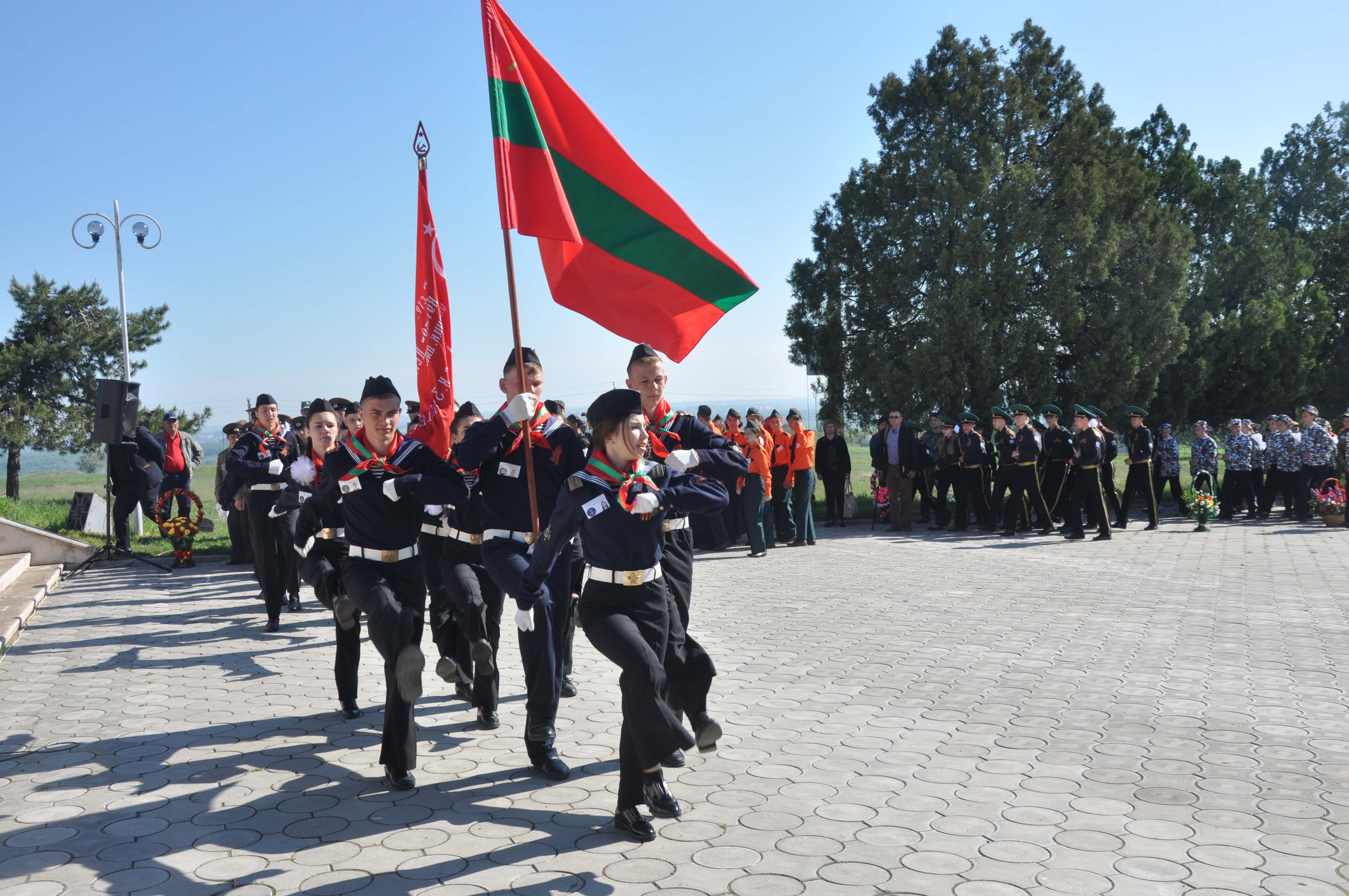 Память тех, кто защищал землю в годы Великой Отечественной войны, кто погиб в Афганистане, кто заслонил своей грудью молодую Приднестровскую Молдавскую Республику в 1992 году, почтили минутой молчания. Затем присутствующие возложили цветы и венки к обелиску Славы.