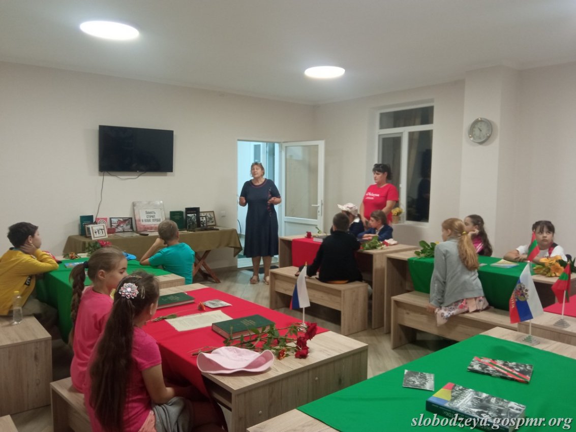 Данную презентацию представили юным слободзейцам на открытии выставки «Память стучит в наше сердце». Ребятам рассказали о Бендерской трагедии, познакомили со сборником сочинений «Приднестровские исторические чтения», показали зал музея, полностью посвящённый истории создания и развития Приднестровской Молдавской Республики. Мероприятие завершилось экскурсией к Мемориалу воинской Славы и возложением цветов к памятникам погибшим защитникам ПМР и А.Д. Гусару.