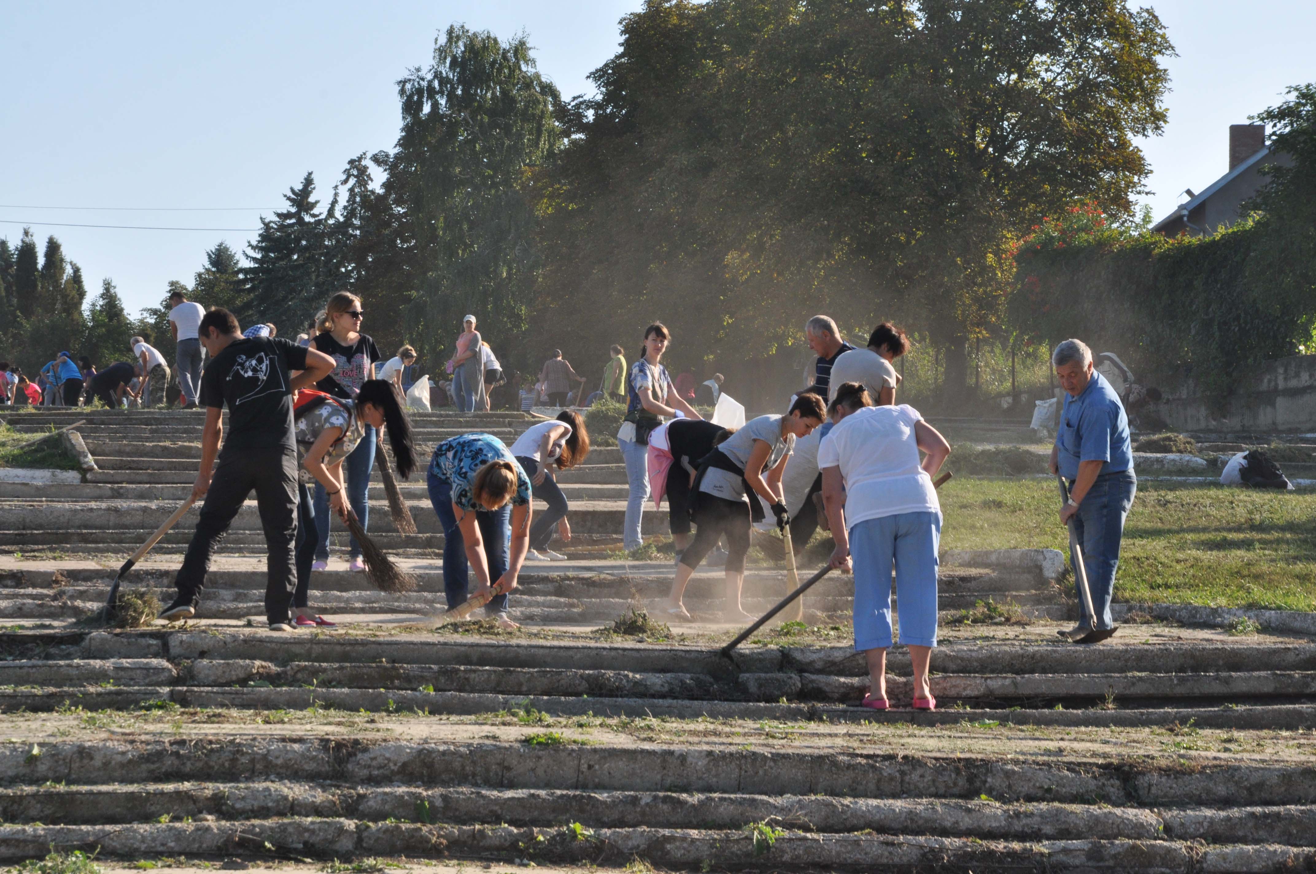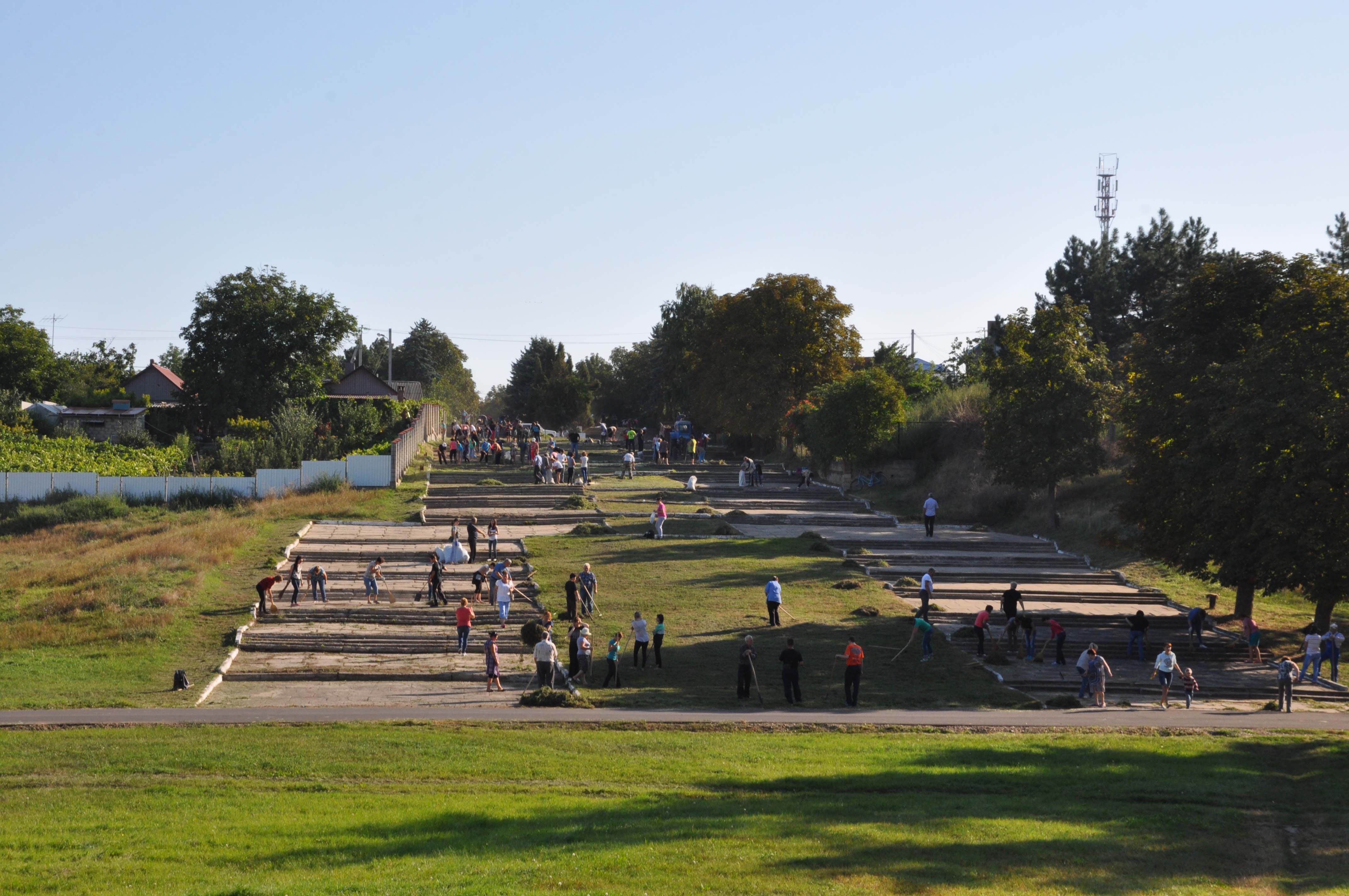 В работах по благоустройству территории стадиона приняли участие районное управление физической культуры, спорта, туризма и молодежной политики вместе с учащимися школ города.