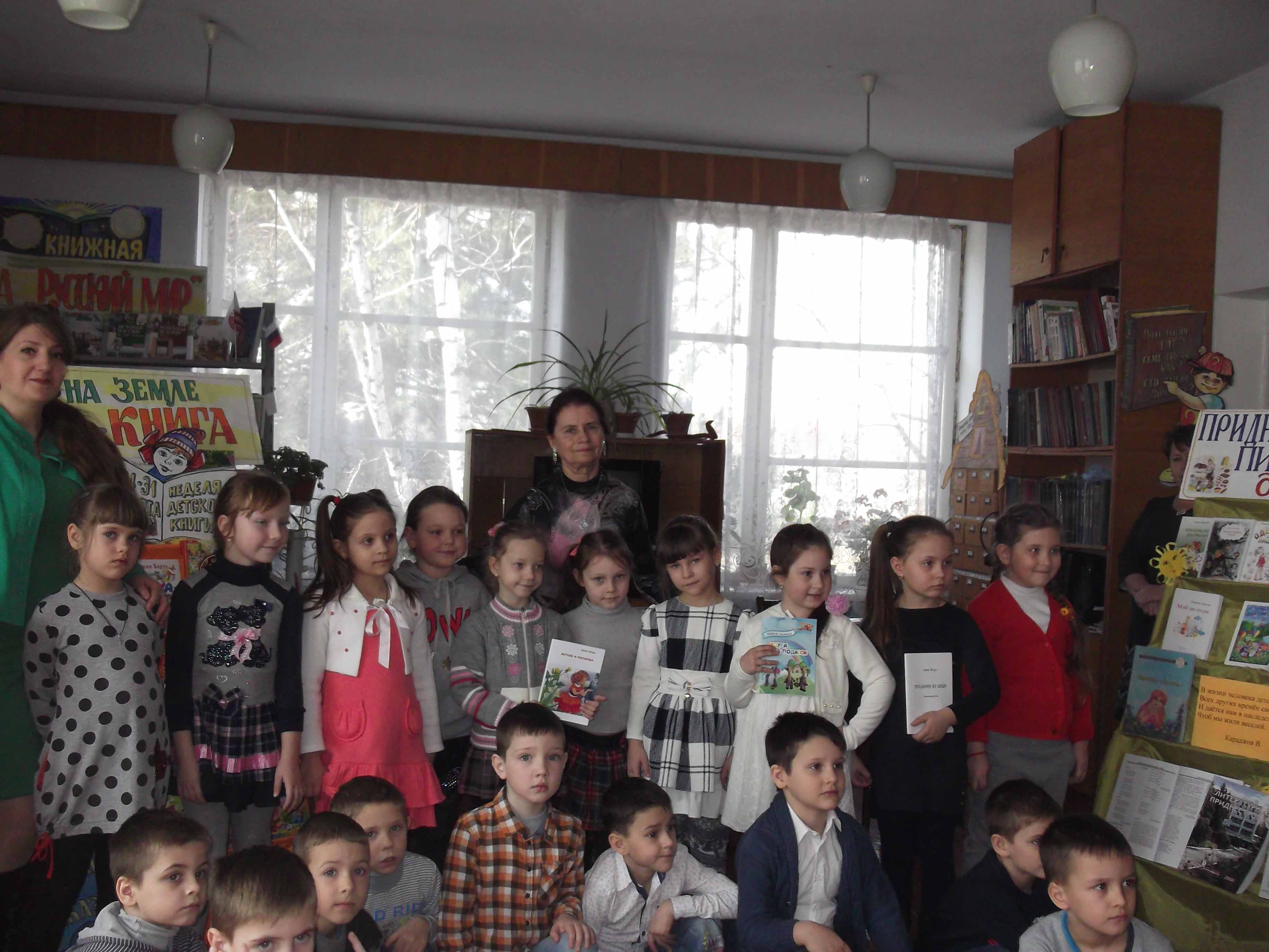 Для детей провели обзор книжной выставки детских писателях-юбиляров 2017 года, таких как Агния Барто, Корней Чуковский, Самуил Маршак и Валентина Осеева.