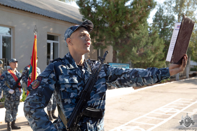 Тирасполь, 11 сентября. /Новости Приднестровья/. Новобранцы Специальной моторизованной войсковой части (СМВЧ) МВД ПМР поклялись в верности народу Приднестровья. Исполняющий обязанности командира СМВЧ Виктор Яковенко поздравил военнослужащих и пожелал им достойно нести звание защитников Родины.