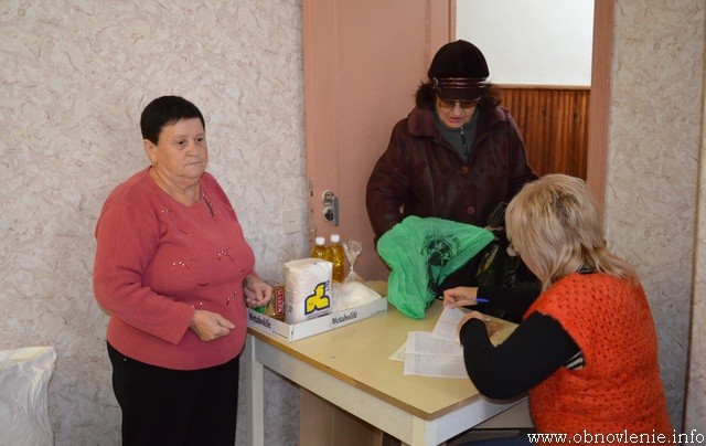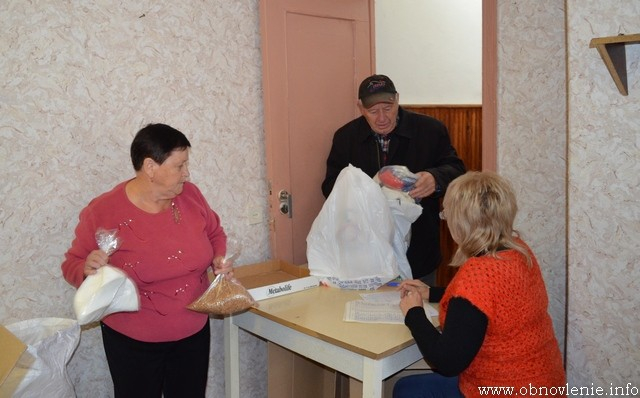 По словам председателя организации Владимира Качана, акция продлится несколько дней. Члены городского объединенного совета инвалидов и ветеранов вручают продуктовые наборы, в которые входят крупы, масло и сахар. Всего такие наборы получат 256 человек.