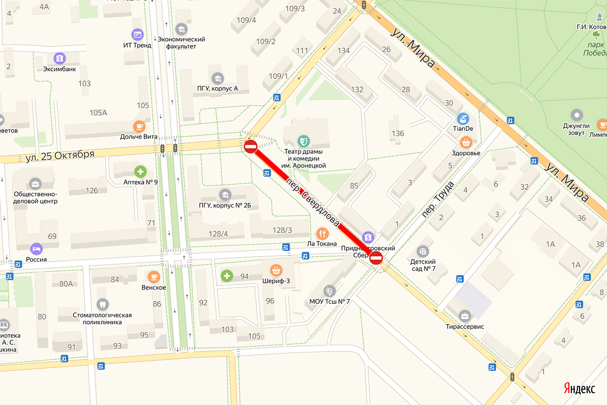 А с 19 по 24 июня нельзя будет проехать по переулку Свердлова (от ул. 25 Октября до пер. Труда). Там начнут капитальный ремонт участка магистральной тепловой сети.